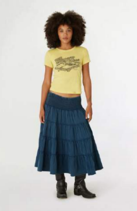 GOLDEN Clea Mid-rise Mineral Washed Casual Maxi Skirt