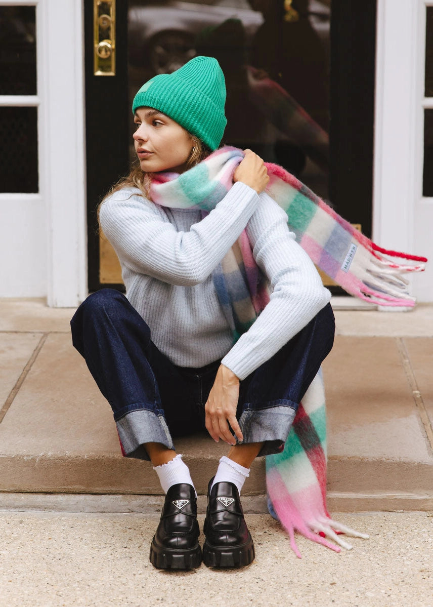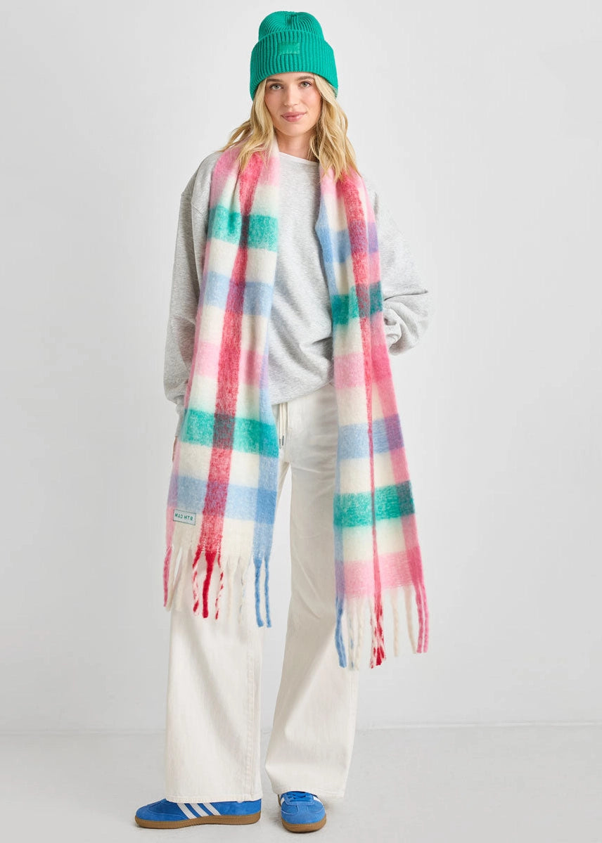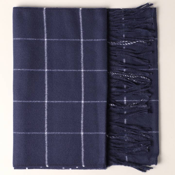 Fashion City Cashmere Feel Plaid Pattern Scarf - Fringe