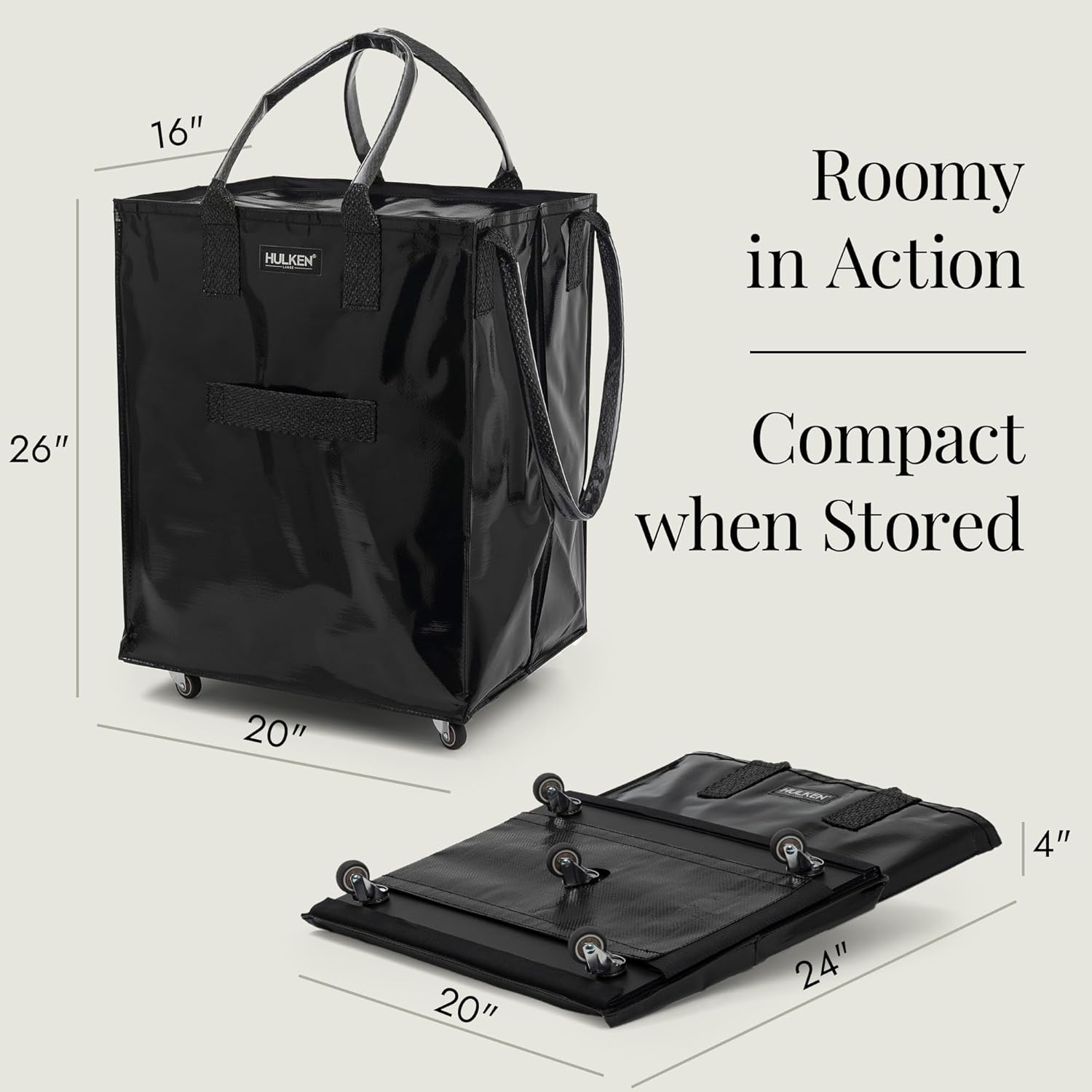 Hulken makes durable, foldable rolling bags to help you conveniently schlep with ease and style. Made with water resistant, industrial-grade materials and swivel wheels, Hulken’s versatile products are built to last and travel with you wherever you go. Effortless glamour meets heavy-duty function. Your chic, practical bag on wheels.