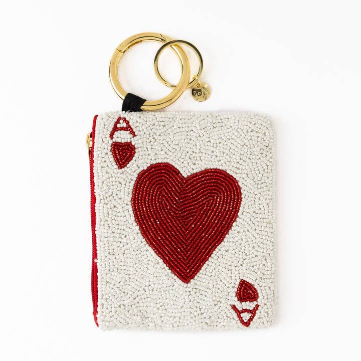 • Hand-beaded Ace of Hearts design
