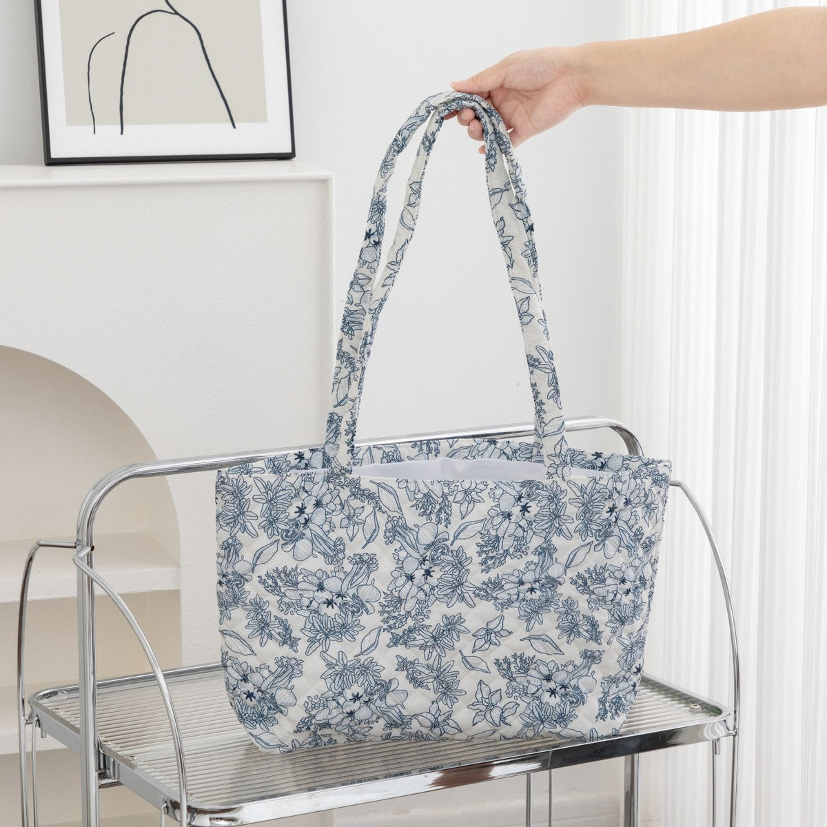 JOSSLYN by Wall to Wall Organic Blue Floral Quilted Tote Bag
