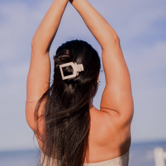 Lay flat and relax with the new TELETIES Medium Flat Square Hair Clip. This hair clip is designed to allow you to lay back flat, do yoga, or sit comfortably in a seat with a headrest, and it is made with the same material that is nearly unbreakable.
