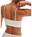 Features: Soft, stretchy seamless fabrication, V-neckline, triangle cups, lettuce-edge trim, textured finish, skinny straps