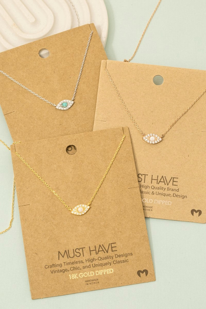 GOLDEN Gold Dipped Opal Studded Evil Eye Charm Necklace