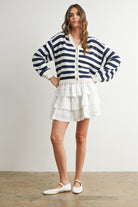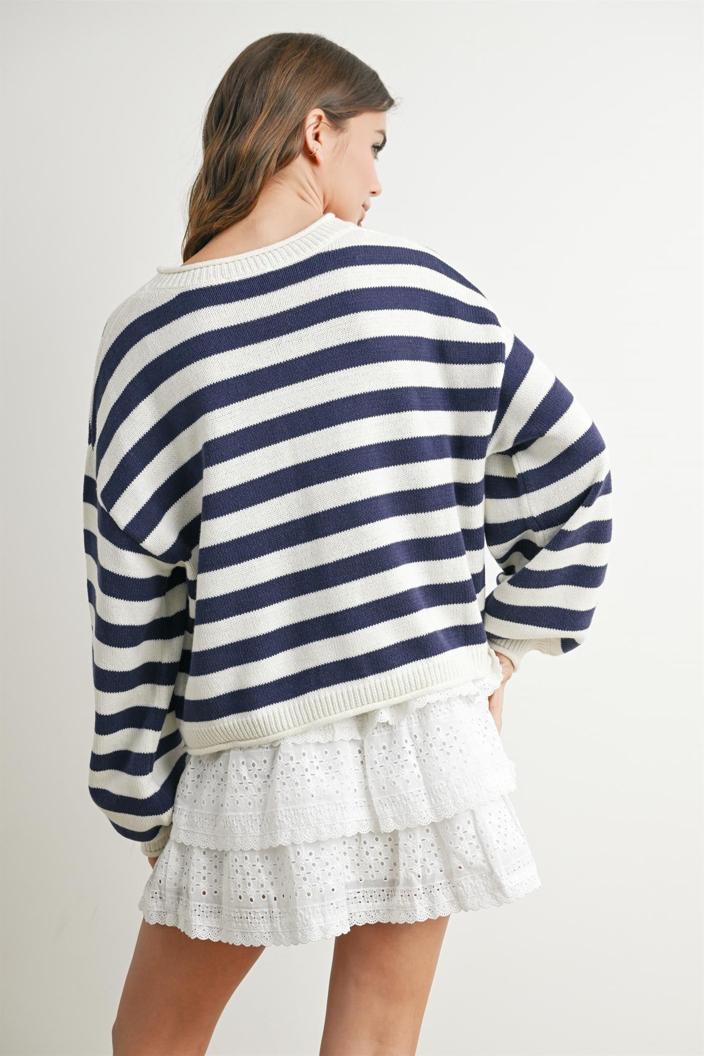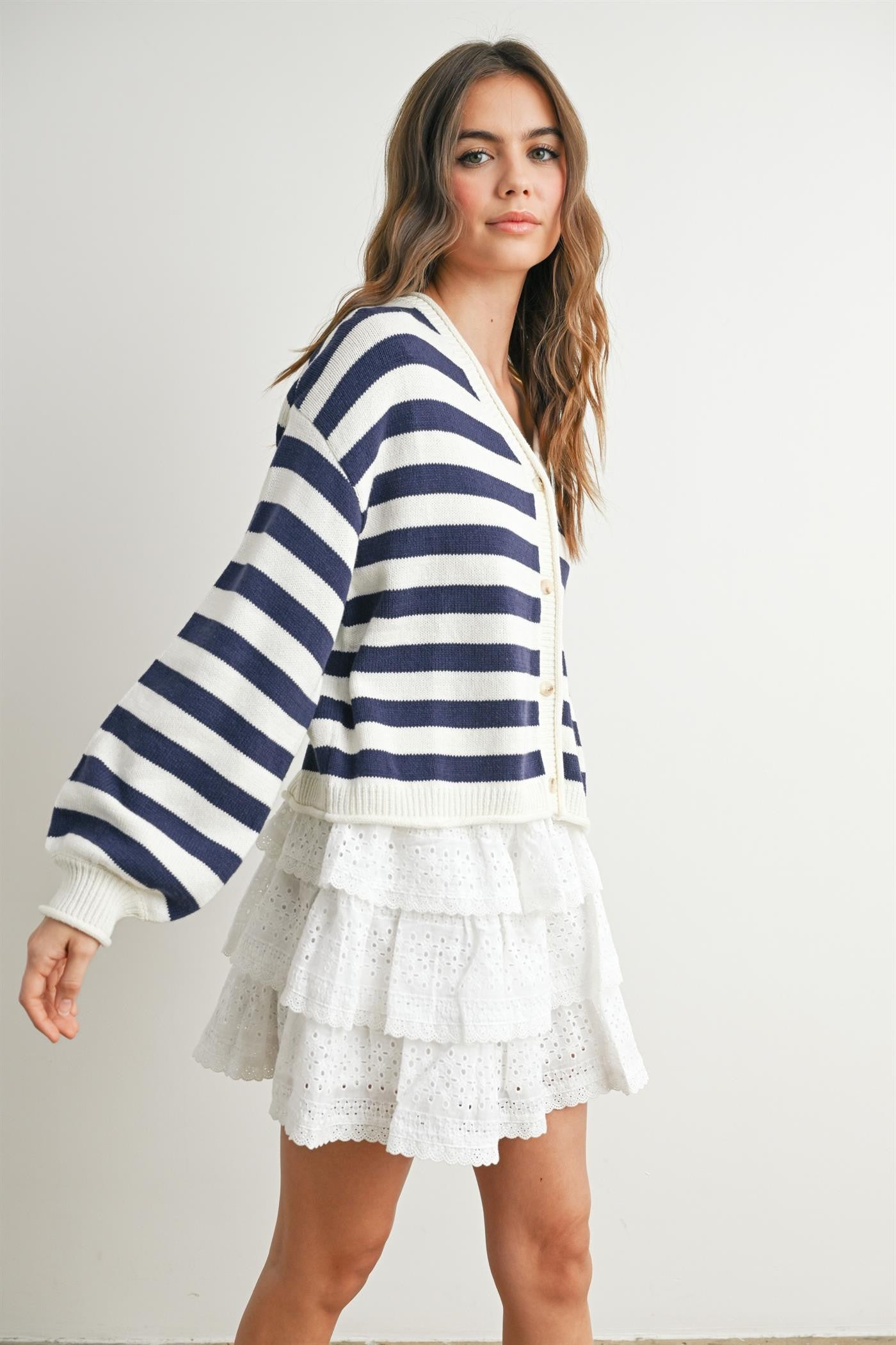 Step up your sweater game with the Button Front Striped Sweater, designed