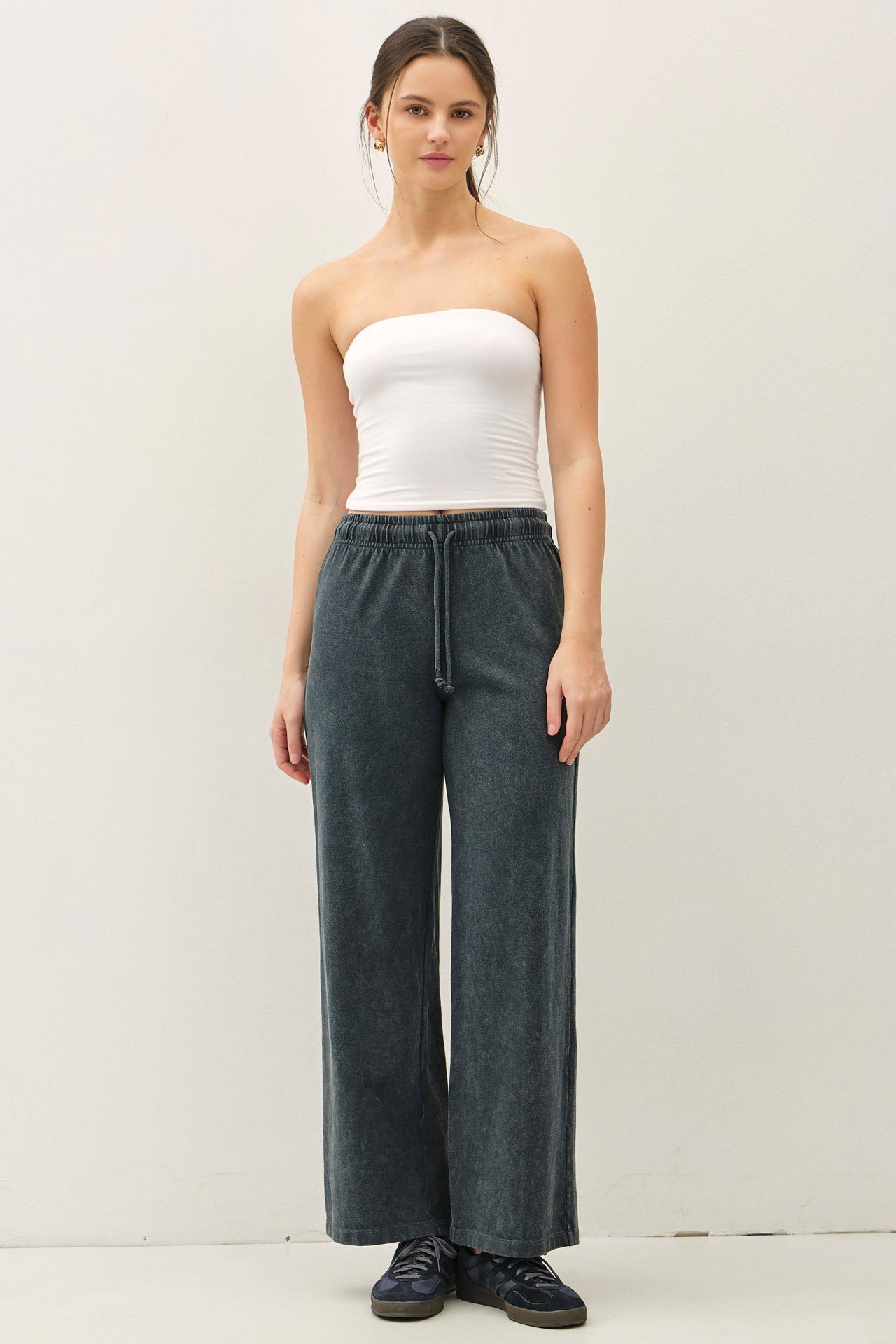 Experience all-day ease with a pant that moves with you. The elastic waist with a drawstring adapts to your comfort level—from a snug fit when you’re lounging to a looser feel during travel or errands. The relaxed wide-leg silhouette pairs effortlessly with tees, hoodies, or lightweight jackets, creating versatile outfits that transition from sofa to street with minimal effort. Built for everyday life, these pants are a practical, comfortable staple for any casual wardrobe.