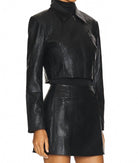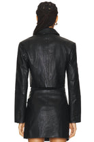 A leather jacket so good, it works with just about any outfit.Meet the Lindsay Jacket by ASTR, a chic black leather jacket crafted for the modern traveler. Featuring long sleeves and a structured collar, this jacket combines style and function with its zip closure and convenient pockets. Made from 55% polyurethane and 45% viscose, it offers durability and a sleek appearance. Care for this solid-patterned piece with dry cleaning.