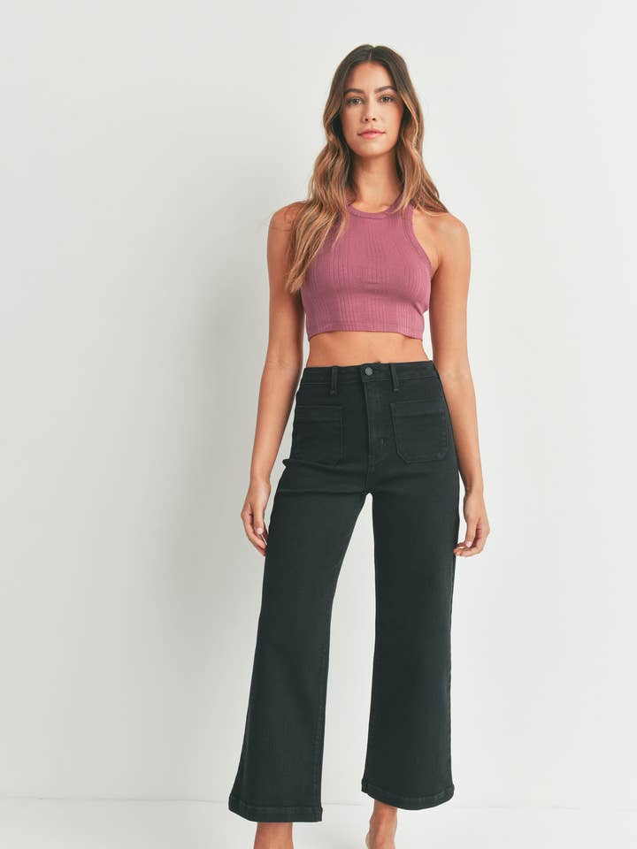 12" Rise, 28" Inseam, 10.5" Opening Black Denim - Patch Pocket Wide Leg Flare