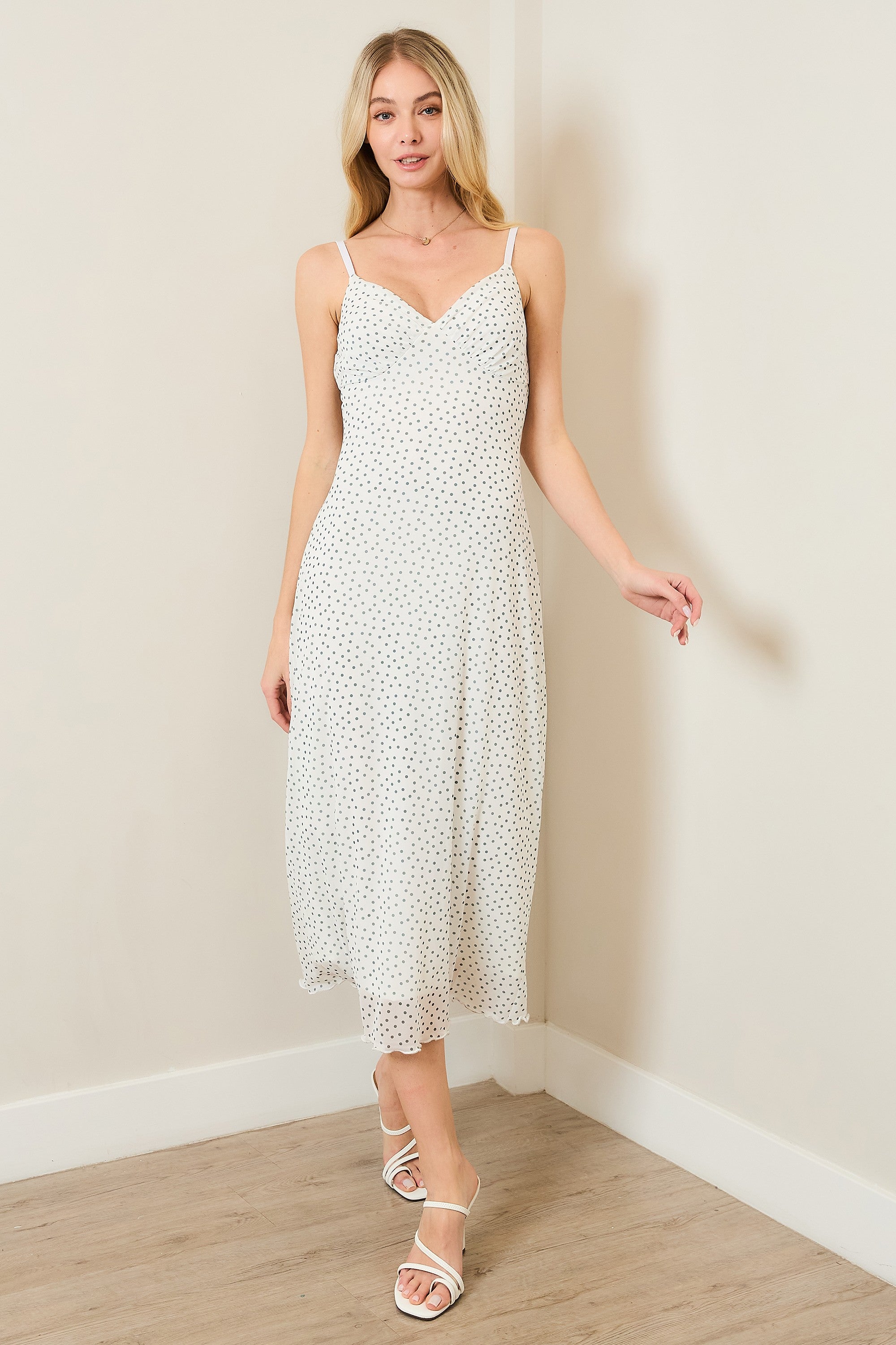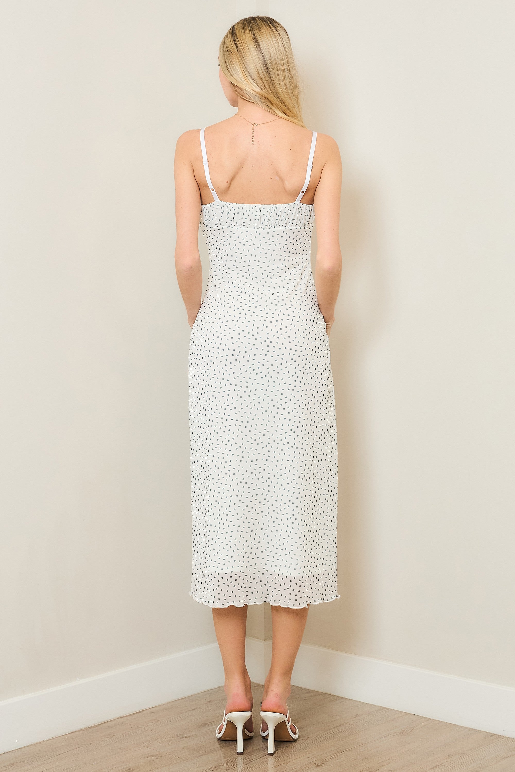 - Design Details: Polka dot mesh dress with lining and adjustable straps for a customizable, flattering fit.