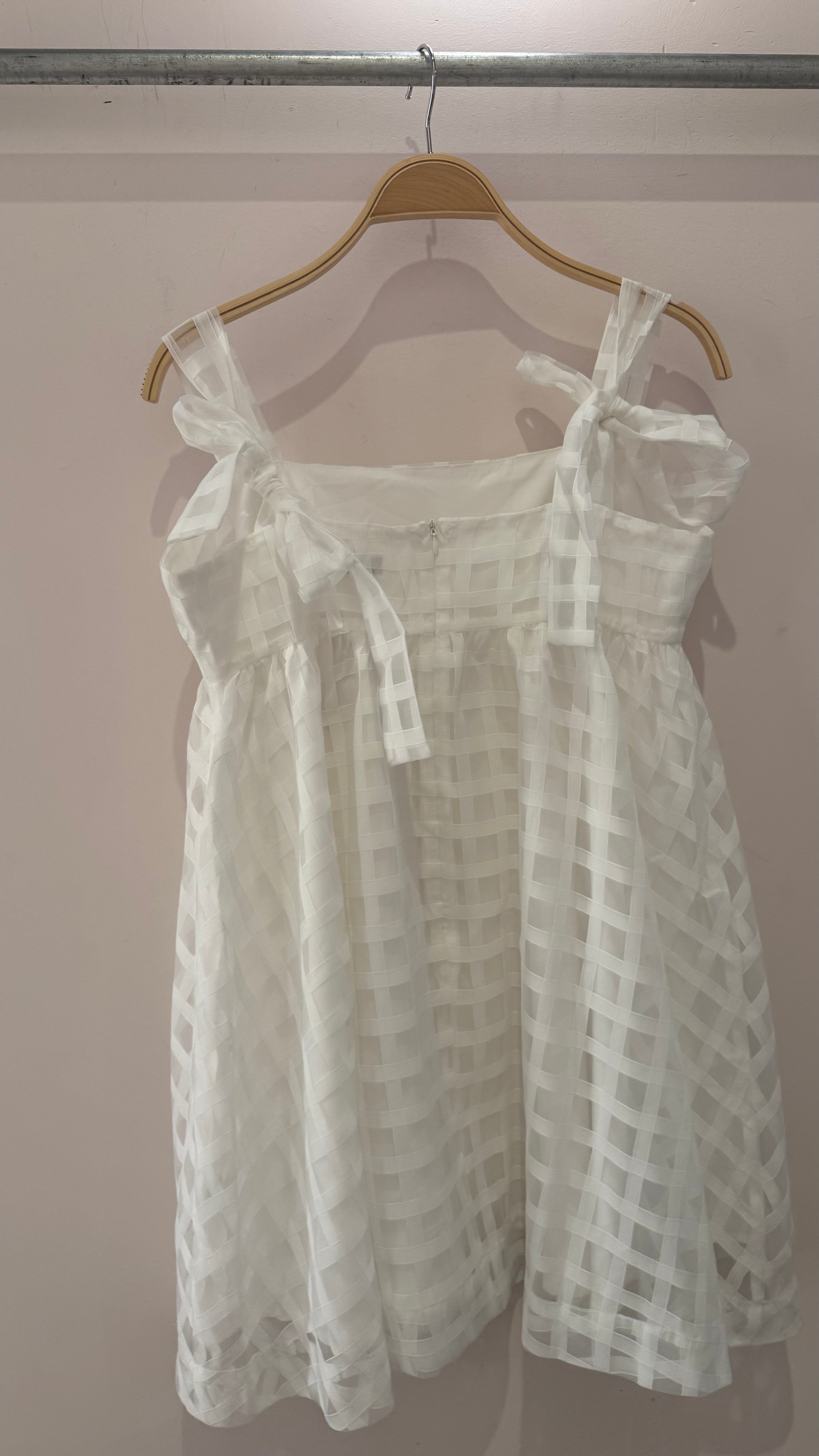 GOLDEN Sunday White Plaid Organza Babydoll Dress