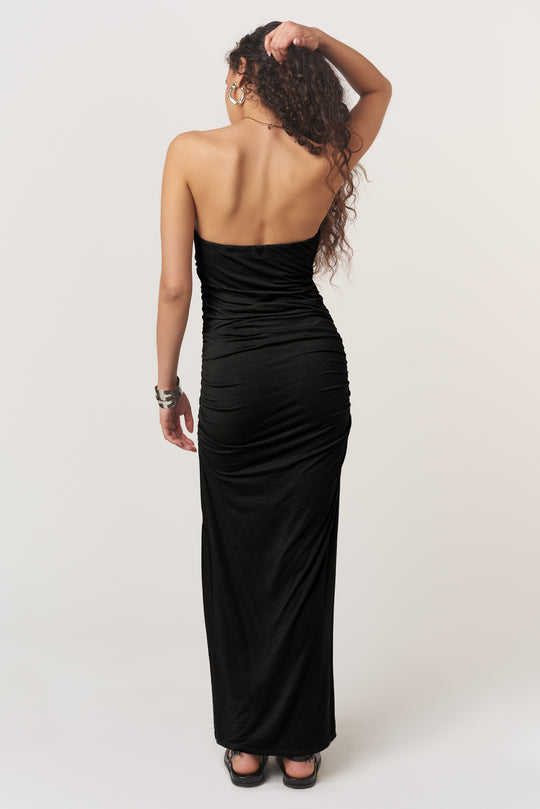 The Nala Strapless Side Ruched Dress is a need, not a want. The strapless neckline and fitted silhouette are made extra flattering thanks to the side ruching details. The maxi length keeps it on-trend, and the side slit keeps it flirty. What more could you ask for?