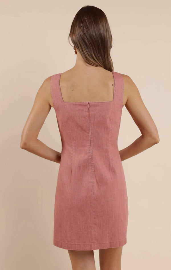 The perfect mini dress for those warmer months. Introducing the Sunbeam Bow-front Denim Mini Dress by SAGE THE LABEL, an elegant addition to your spring wardrobe in a charming Dusty Rose. This women's A-line mini dress features a flattering sweetheart neckline and a solid pattern, designed specifically for the stylish dinner party occasion. Sleeve Length: Sleeveless. Closure: Zip closure. Complete your ensemble with the trend of quiet luxury in mind.