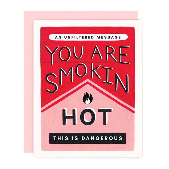 You Are Smokin Hot: You Are Smokin Hot, This Is Dangerous greeting card. When they're so hot they need a warning label. Single blank interior greeting card with matching pink envelope.