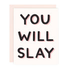 You Will Slay: You Will Slay greeting card. A fierce reminder to take no prisoners while chasing your dreams. Or brewing a pot of coffee. Single blank interior greeting card with matching blush envelope.