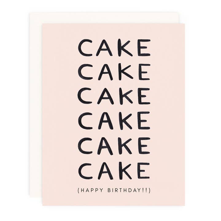 Cake Birthday: CAKE CAKE CAKE greeting card. When you're really excited about err your friend's birthday. Single blank interior greeting card with matching ivory envelope.