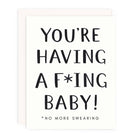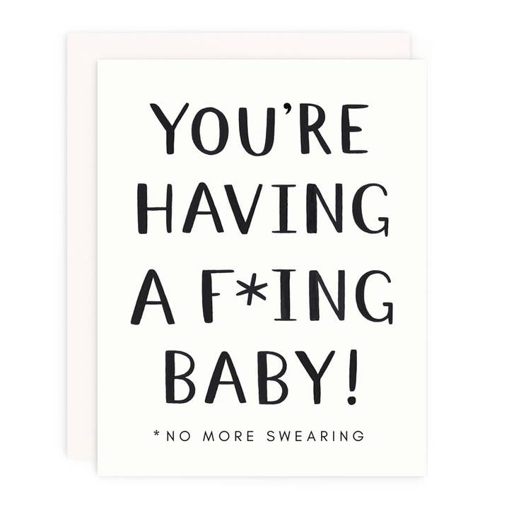 No More Swearing: You're Having A F•cking Baby! 'No More Swearing greeting card. Get it ALL out now, mother ducker. Single blank interior greeting card with matching blush envelope.