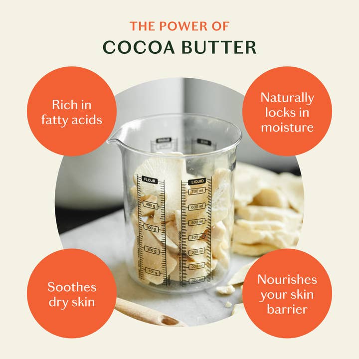 Concentrated Moisturizing Formula: The Body Stone is a highly efficacious cocoa butter concentrate chock full of fatty acids to deeply moisturize dry skin. This ultra rich body butter bar glides on like silk and absorbs quickly, sealing in hydration without any greasy residue.
