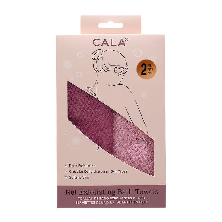 CALA Net Exfoliating 2 pcs Bath Towel Set. Revitalize and refresh the skin with CALA’s Net Exfoliating Bath Towels—expertly designed to deliver deep yet gentle exfoliation. The textured net fabric effectively buffs away dull, dry skin to reveal a smoother, softer, and more radiant complexion. Flexible and easy to use, the material creates a rich, foamy lather that rinses cleanly and dries quickly, making it ideal for everyday use on all skin types. Durable and long-lasting, these towels elevate any shower routine to a spa-like experience.