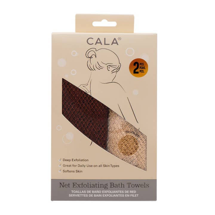 CALA Net Exfoliating 2 pcs Bath Towel Set. Revitalize and refresh the skin with CALA’s Net Exfoliating Bath Towels—expertly designed to deliver deep yet gentle exfoliation. The textured net fabric effectively buffs away dull, dry skin to reveal a smoother, softer, and more radiant complexion. Flexible and easy to use, the material creates a rich, foamy lather that rinses cleanly and dries quickly, making it ideal for everyday use on all skin types. Durable and long-lasting, these towels elevate any shower routine to a spa-like experience.