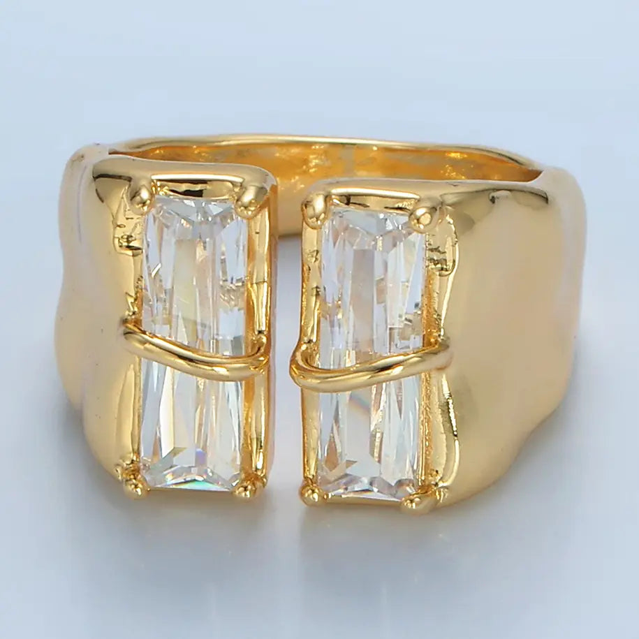 Aim Eternal 24K Gold Filled Double Baguette Cz Signet Wrap Ring