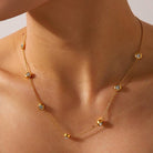 18K Stainless Steel Non-Tarnish Station of Rhinestone Necklace, crafted from premium stainless steel with a luxurious 18K gold finish, this necklace features a series of charming rhinestone on a gold edge pendants stationed along the chain. The non-tarnish properties ensure that your necklace maintains its luster and brilliance for years to come.
