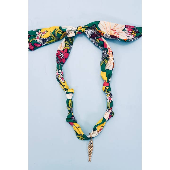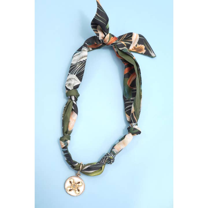 Handcrafted Scarf Interchangeable Charm Necklace. Charms are removable and can be used with different scarves. This unique piece combines a soft, artisanal scarf necklace featuring customizable charms, this soft fabric scarf doubles as a stylish necklace, featuring a delicate INTERCHANGEABLE charm that adds a sweet, personal touch. Lightweight and versatile, it is perfect for layering.