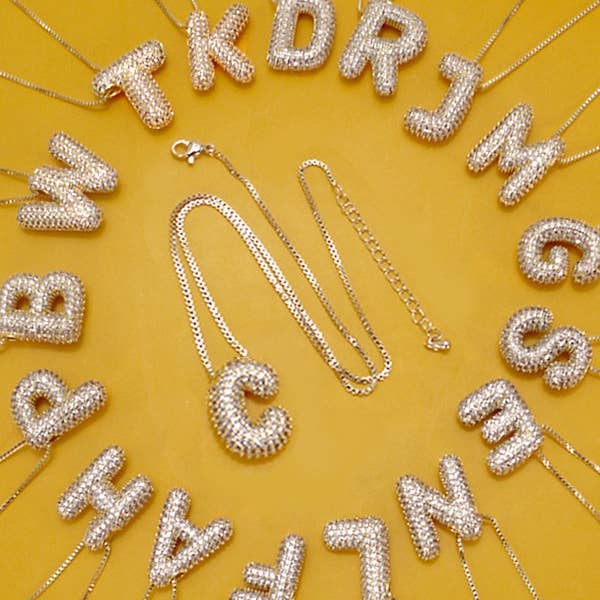 JOSSLYN by Wall to Wall Initial Pave Rhinestone Bubble Balloon Necklace
