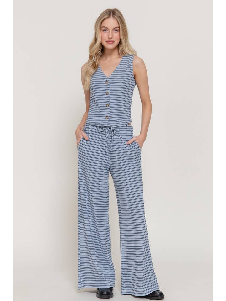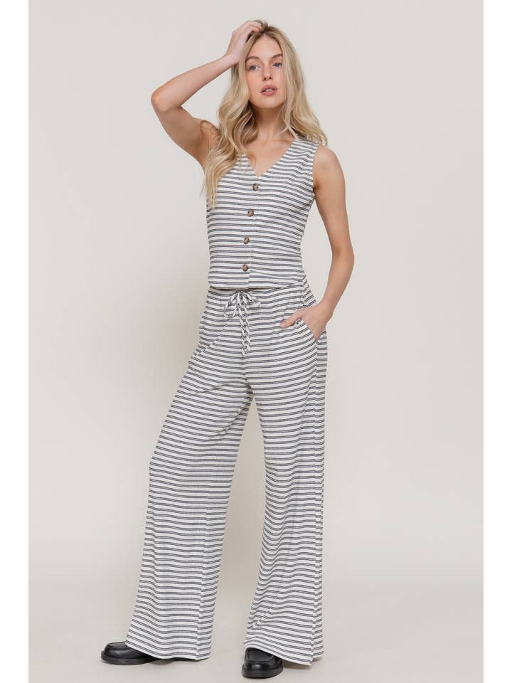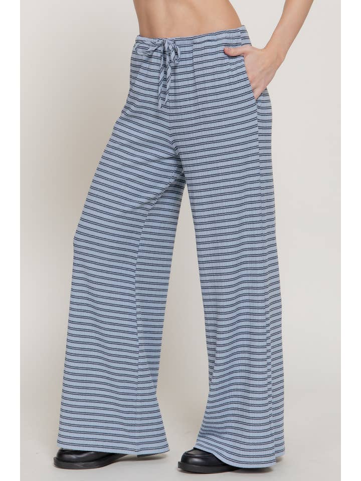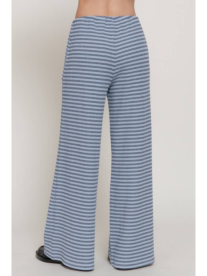 Meet versatile comfort with the Active Basic Elastic Waist Stripe Varigated Rib Long Pants—designed for everyday wear, travel, and lounging with a touch of refined texture. This striped, wide-leg silhouette drapes beautifully and moves with you, thanks to its breathable knit and gentle stretch.