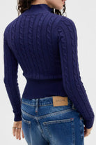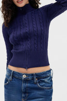 A two-way zipper gives a subtle retro vibe to this supersoft cardigan featuring dimensional cable stitches.