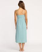 Effortless summer style, courtesy of Billabong Women's Off The Coast midi dress. Crafted from soft, breathable cotton double gauze, this breezy staple features a flattering fitted bodice with straight neckline and smocked detailing, plus a flowy, easy-to-move-in skirt for sunny beach-to-brunch days. Quintessential warm-weather versatility. Featured here in the Blue Fog colorway.