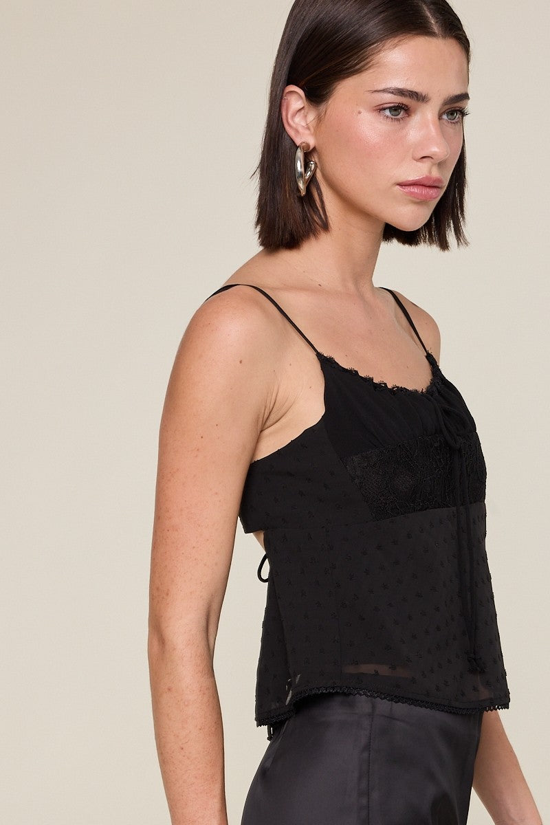 Golden Bryska Dot Lace Bust Double Back Ties Cami Crop Top