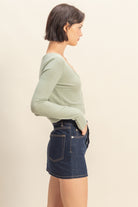 GOLDEN Hyacinth Cropped V-neck Long Sleeve Top