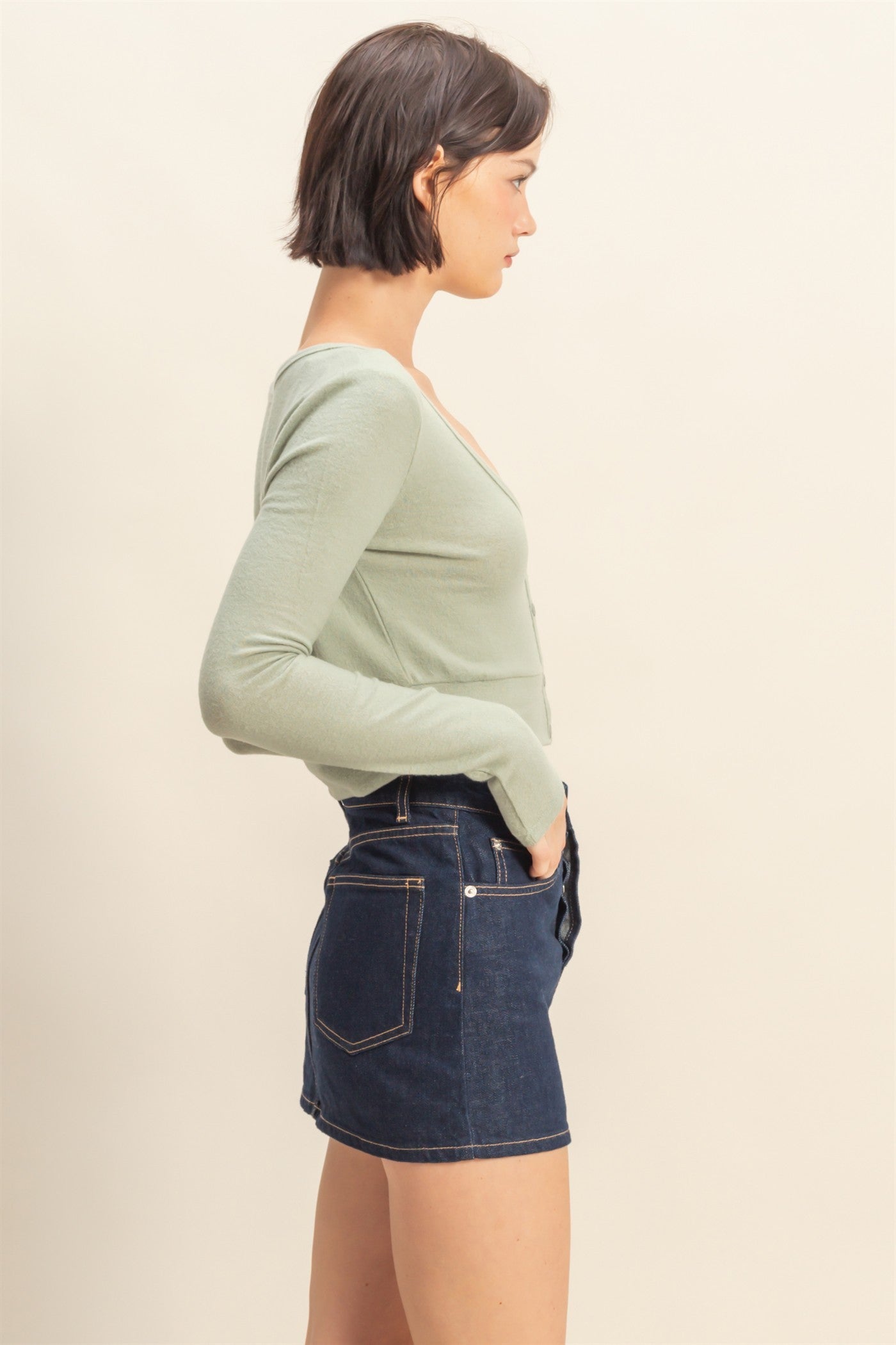 Meet the Hyacinth Cropped V-Neck Long Sleeve Top—a soft, cropped essential designed for everyday wear and effortless layering. Ideal for fashion-forward individuals who value comfort without sacrificing style, this top elevates any transitional look.