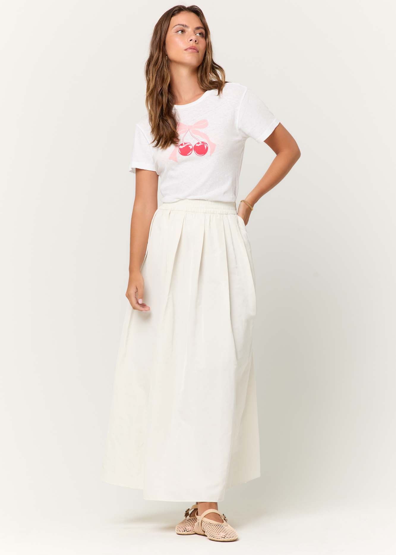The Double Cherries Baby Tee combines a flattering baby tee silhouette with a playful pink and red colorway, featuring a bold graphic that stands out. Made from 100% cotton, this soft yet structured tee is the perfect match for fun pants and heels.