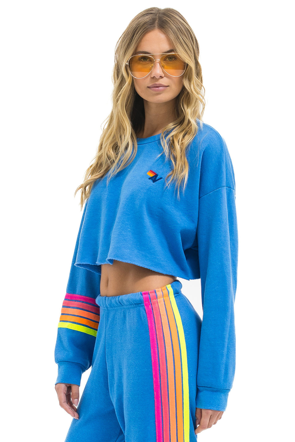 Aviator Nation Rugby Stitch Cropped Crew Sweatshirt Relaxed