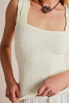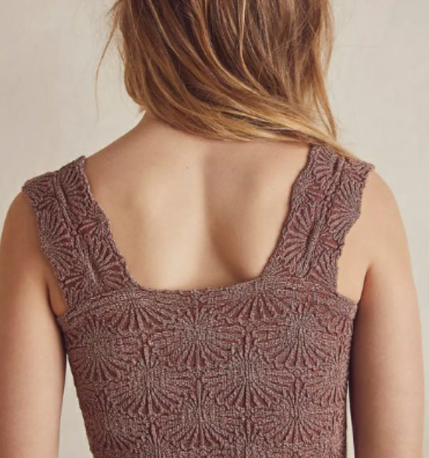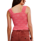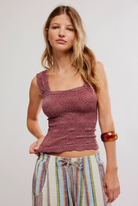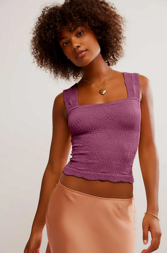 The Love Letter Cami in Tart Berry by Free People is a sweet and flirty addition to your fall layering wardrobe. Featuring a cropped, square-neck silhouette, this cami shows off a romantic jacquard floral design with a playful lettuce-edge hemline. With wide straps, a stretch fit, and easy pull-on style, it’s perfect for pairing with high-rise jeans or layering under your favorite cardigan.