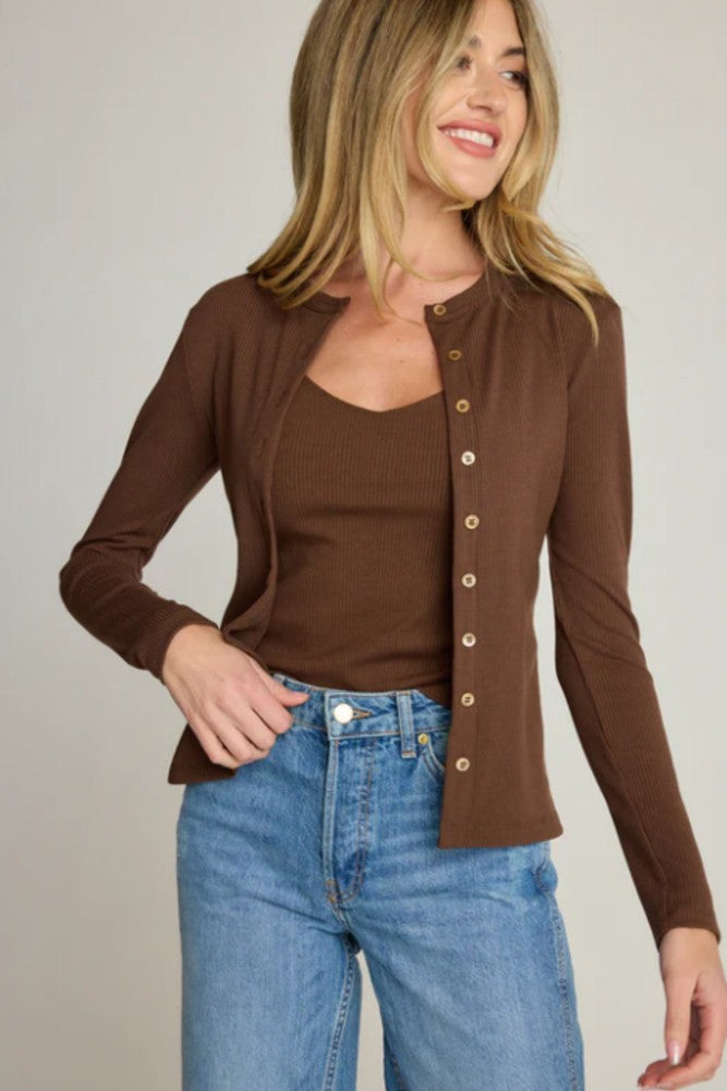 Product Details: The Serena Cardigan is your new wardrobe staple, crafted from a luxurious 4X2 rib fabric. Perfect for layering, pair with the Serena Tank and Skort for a coordinated look. This cardigan is an essential for transitional weather.