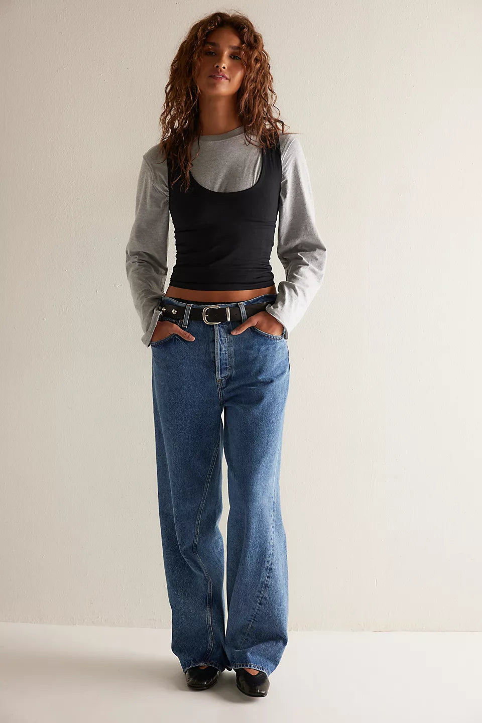Dipped Shop Round Neck Ribbed Tank Top - Light Grey