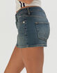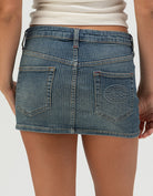 BDG Urban Outfitters Ultra Stripe Denim Mini Skirt. This denim mini features 5-pocket denim styling and allover textured stripes. Metal BDG branding. Button closure with zip fly. Belt loop waist. Embossed branding at back right pocket. Approximate length: 11".