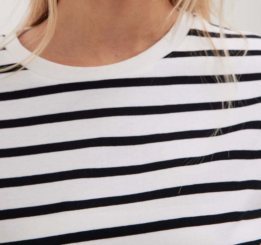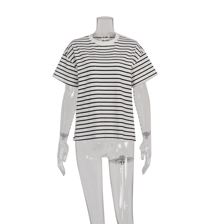 Dipped Shop Round Neck Striped Loose Short Sleeves Top