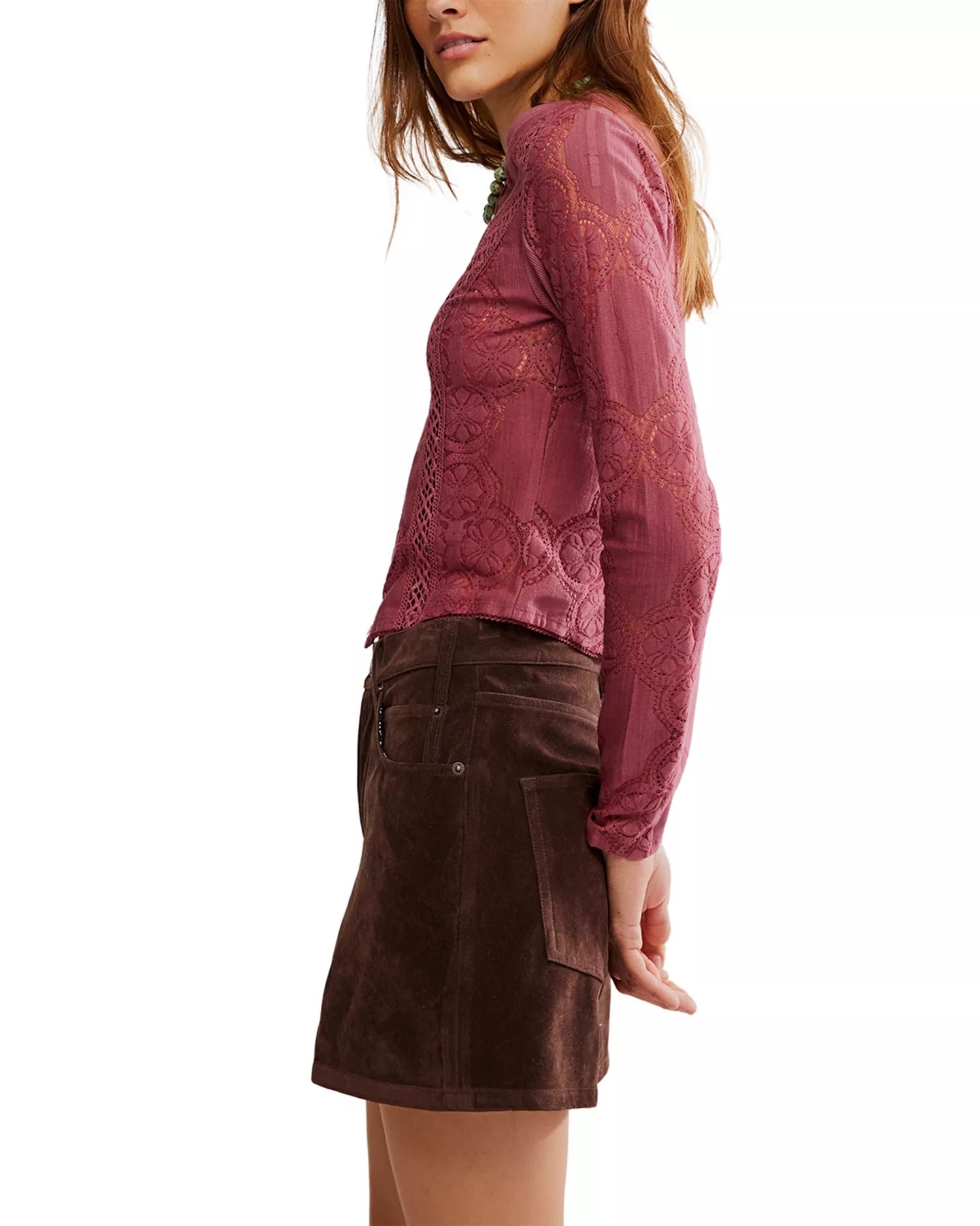 Add a dainty touch to your look with this sheer cotton-lace long sleeve, featured in a button-front style for a versatile piece that’s perfect for layering.