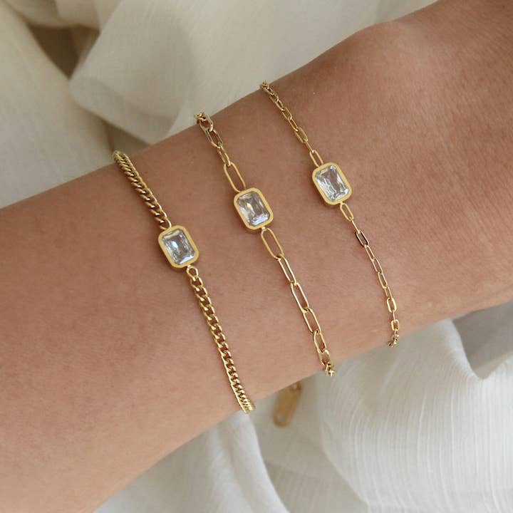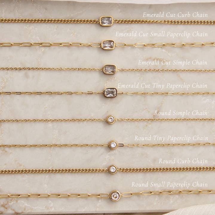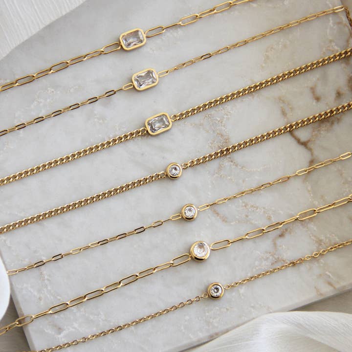 - 3mm Round Solitaire Simple Chain Bracelet (E)